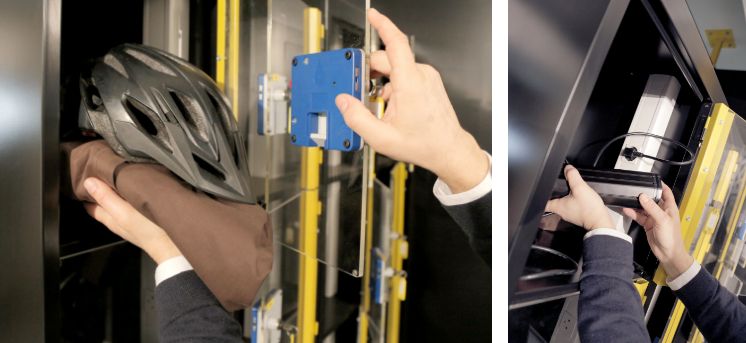 Profitez des casiers fermés avec alimentation électrique pour déposer vos accessoires de vélo et vos effets personnels : casque, gants, cape, etc.
